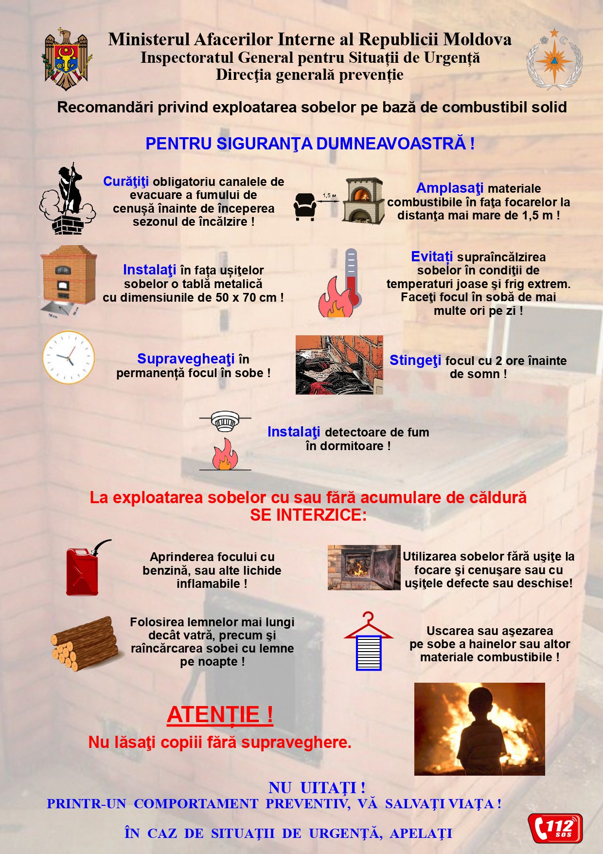 Primăria orașului Rezina informează locuitorii privind Regulile de apărare împotriva incendiilor în perioada rece a anului, îndeosebi la exploatarea sobelor și a coșurilor de fum.