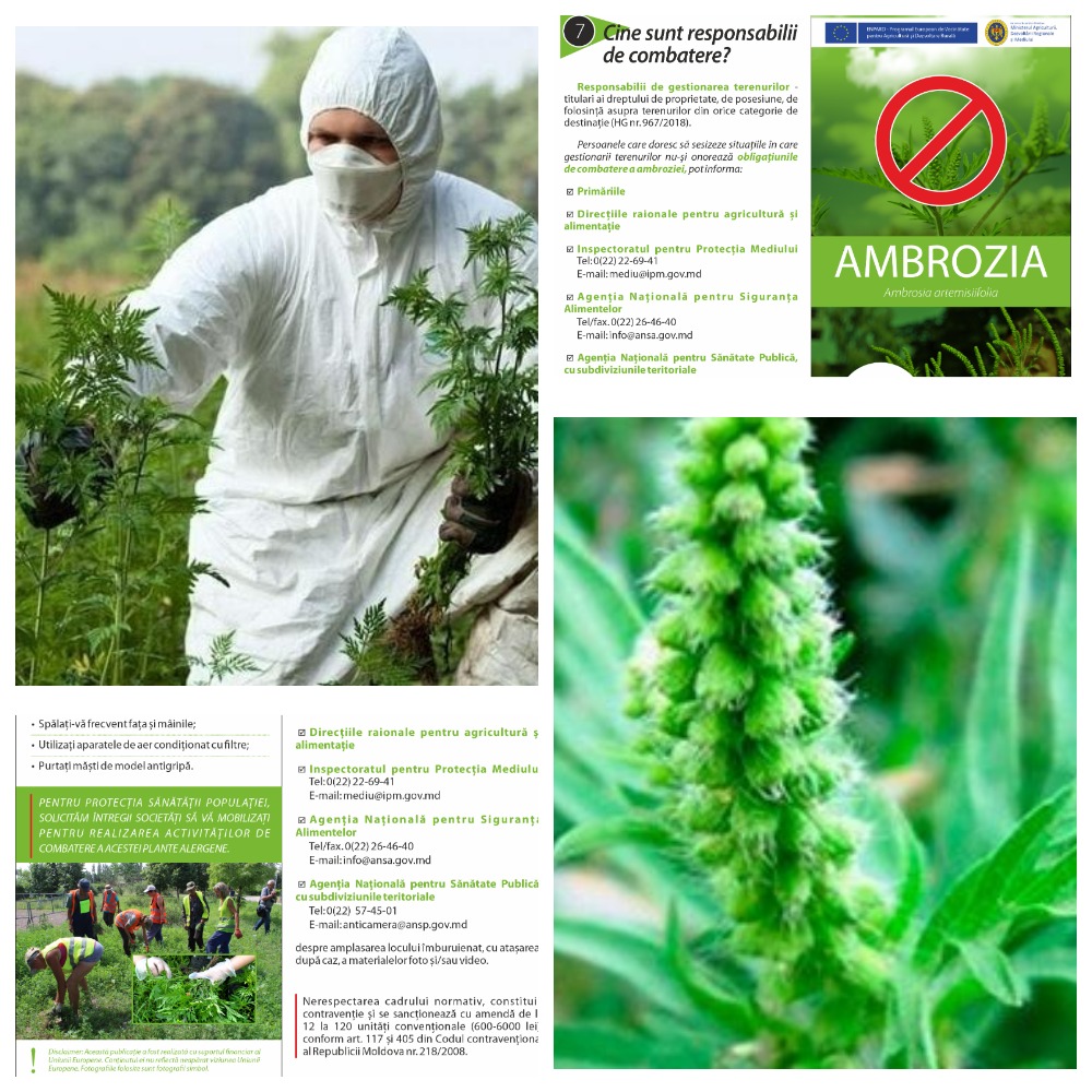 Rugăm toți proprietarii și gestionarii de terenuri să întreprindă toate măsurile necesare pentru distrugerea ambroziei și stoparea dezvoltării ei, în caz contrar aceștia riscă amenzi.