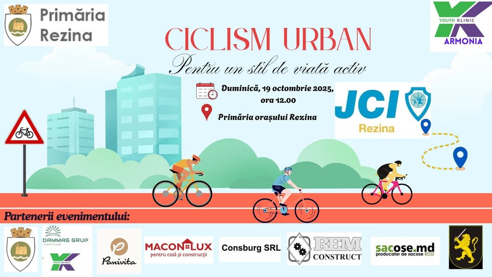 JCI Rezina, împreună cu AO Armonia și Primăria orașului Rezina, organizează cea de-a doua ediție a maratonului de ciclism „Ciclism urban pentru un stil de viață activ” – o inițiativă menită să promoveze sănătatea, energia pozitivă și spiritul civic al rezinenilor. ![]()