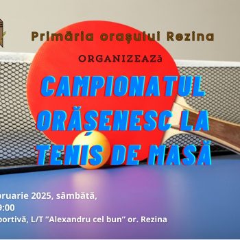 Primăria orașului Rezina are plăcerea de a vă invita la Campionatul Orășenesc de Tenis de Masă, un eveniment dedicat pasionaților acestui sport captivant! Data: 22 februarie 2025, sâmbătă Ora: 09:00 Locația: Sala sportivă, Liceul Teoretic „Alexandru cel Bun”, orașul Rezina Vino să îți testezi abilitățile, să concurezi alături de ceilalți participanți și să te bucuri […]