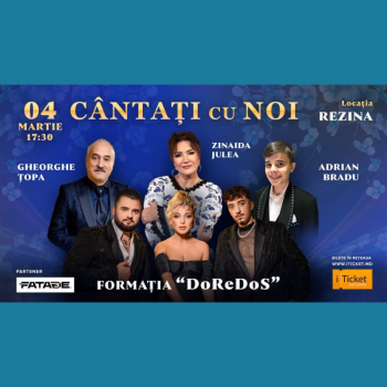 Data: 4 martie 2025 Ora: 17:30 Locația: Palatul raional de Cultură „Nicolae Lupov”, Rezina Preț bilet: 200 lei Invitați speciali: Gheorghe Țopa Zinaida Julea Formația ,,DoReDos” Adrian Bradu Nu ratați această seară de neuitat, plină de muzică și emoție! Vă așteptăm cu drag!
