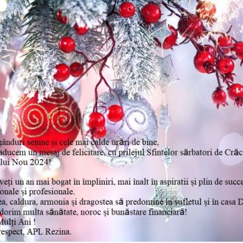 Avem plăcerea de a vă invita la evenimentul special inaugurarea Pomului de Crăciun în oraș, care va avea loc pe data de 19 decembrie 2023 la ora 16:00. Ne-ar bucura să vă avem alături de noi pentru a marca împreună începutul sărbătorilor de iarnă și pentru a aprinde luminițele de Crăciun într-o atmosferă festivă. Așteptăm […]